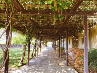 What I love about Lancaster, beyond the wine, is the whole experience. First, the fall foliage. If you go in October or November it is unreal. Bright red vines…golden leaves. It feels cinematic and the girls and I always sneak into the vineyards to snap photos.