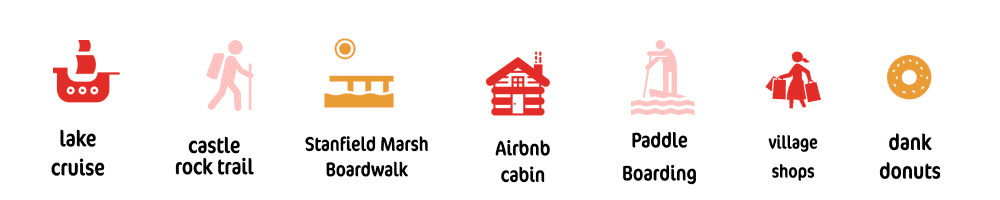 After the boardwalk, pop over to the Alpine Pedal Path Trail On The North Shore (just keep your car parked where it is and walk over.) You’ll end up at the lake and you can keep walking even further along the path (it’s 5 miles long) or turn around and head back to your car. If you brought bikes, or rented one from a shop in town for the weekend, this is the best bike path to ride on, btw!